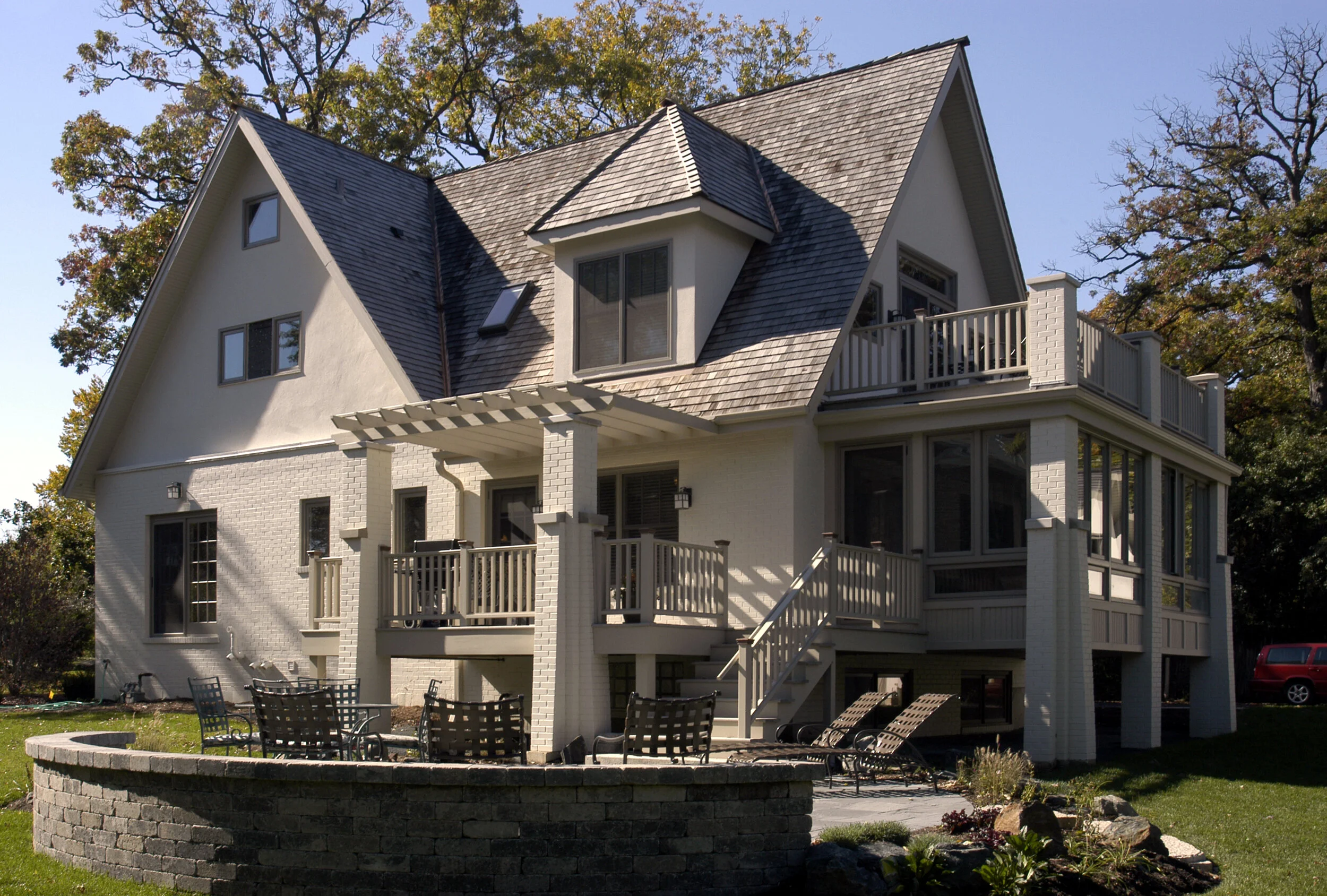 This brick and stucco home sits on a large lot on the North Shore of Chicago. FDA designed a complete renovation with an addition at the front and the rear of the house. The reconfiguration creates beautiful spaces for entertaining and for more private family time with the new kitchen as the center. The house has an enclosed sun room and a “matching” trellised deck off of the breakfast area that leads to a semi-circular patio. The second floor was expanded to make five bedrooms including a master bedroom suite with a deck that offers a view of Lake Michigan.